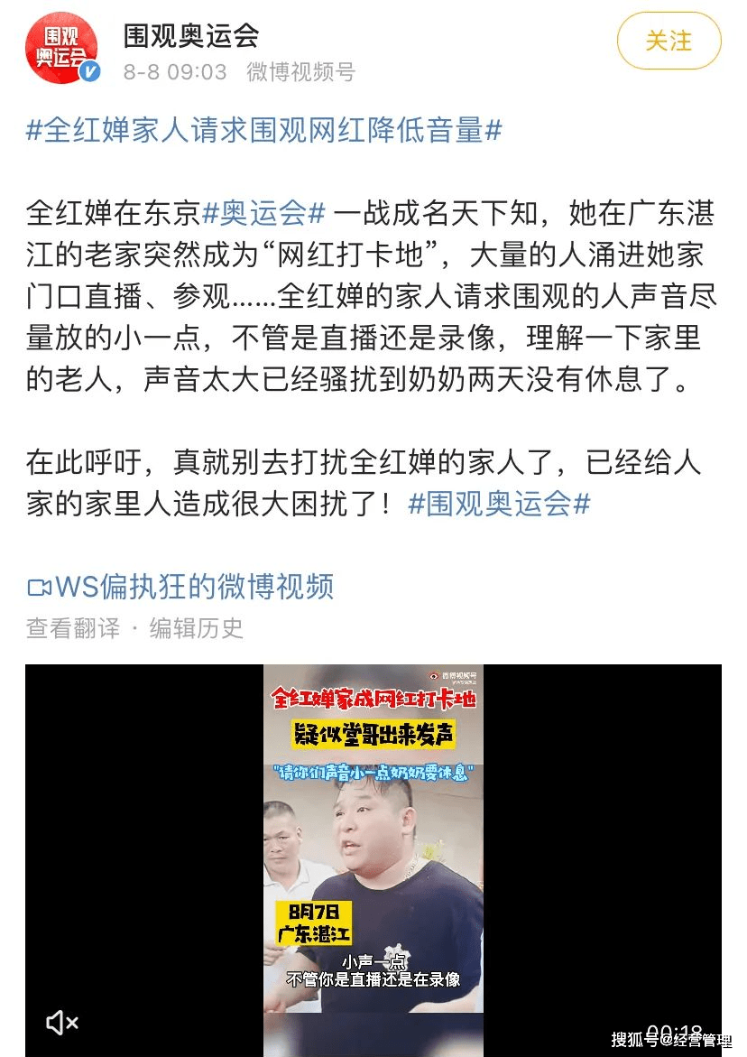 就連全紅嬋的奶奶,電話也接了一天,有很多人攀交情,論親戚,她說自己已經兩天沒有好好休息。