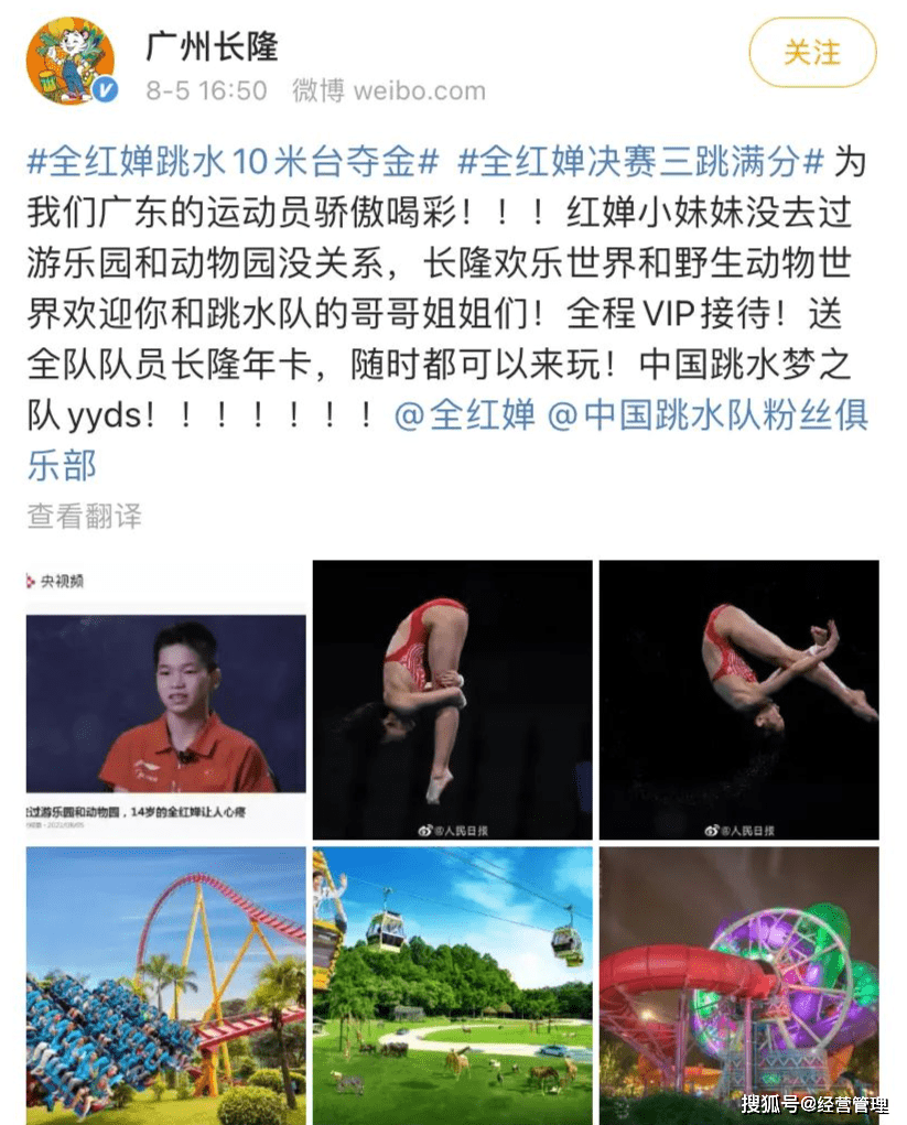 她說自己14歲都沒去游樂園和動物園玩過,廣州長隆集團馬上表示送給跳水隊全體隊員免費VIP暢玩資格,隨時來都歡迎。