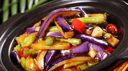 首先,將豆角洗淨摘成長段兒,茄子切成長條狀,蒜頭切片,辣椒切長段。油鍋燒熱,倒入蒜片,爆香;再倒入辣椒,加少許食鹽,翻炒兩分鍾。隨後加入豆角,翻炒幾分鍾,至半熟;再倒入茄子,繼續翻炒三五分鍾,隨後加入適量高湯,改為中小火,所有材料一起拌炒燜煮後,即可出鍋。