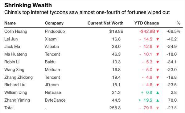 其中,拼多多的創始人黃錚在2021年的財富值損失最多,一度達到了429億美元(約合人民幣2732億元)。這一蒸發的財富值相當於黃錚最高身家的三分之二。