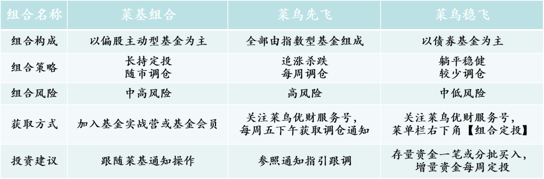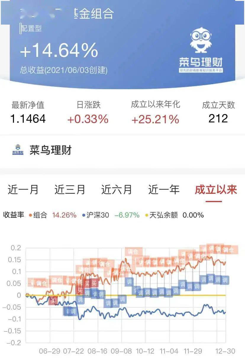 獲取每周調倉操作,請關注菜鳥優財服務號。