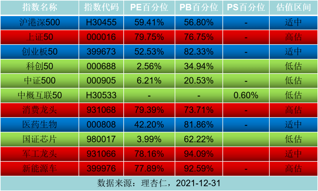 跟蹤指數估值分析:
