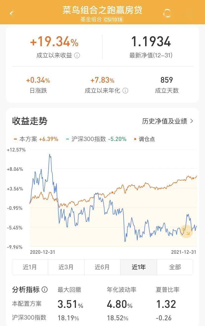 菜鳥穩飛(跑贏房貸)組合表現穩定,年化收益穩定在8%左右,近一年漲幅6.39%。