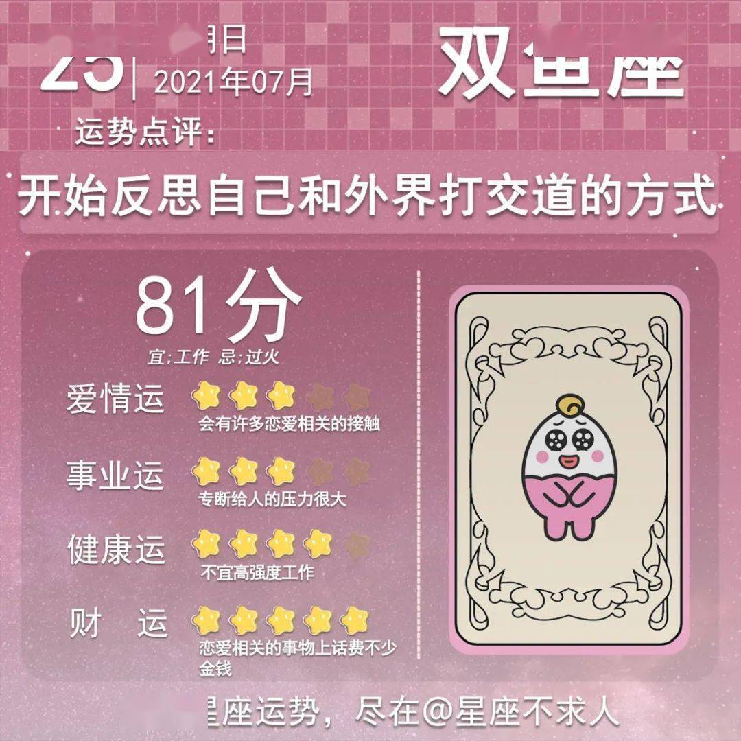 星座 2021年7月25日星座運勢 2021 年 8 月 18 日 底部留言領取好運哦! 展開全文 「關注+星標」公眾號 優先推送星座漫畫,運勢提醒▼ 點個贊! ↓↓馬上會有好事發生 作筆記是好習慣,給你新想法 相關文章: 2021年貴人運超旺的4個星座,你感受到了麼 2022年桃花運最旺的四個星座女生 桃花朵朵開 這四大星座女生比較喜歡追憶舊日時光 外向孤獨,說的就是這幾個星座! 十二星座女誰是渣男收割機! 進入八月之後,財運要爆發,會財源滾滾,金玉滿堂的三大星座 從8月4日開始,運勢如虹,會鴻運當頭,夢想成真的三大星座 從8月5日開始,運勢紅火,會鵬程似錦,要大展宏圖的三大生肖 猜猜12星座女誰的追求者最多? 12星座渣男謊言大公開! 哪些星座想談戀愛卻從來不願主動?十二星座毒舌大王排行榜!