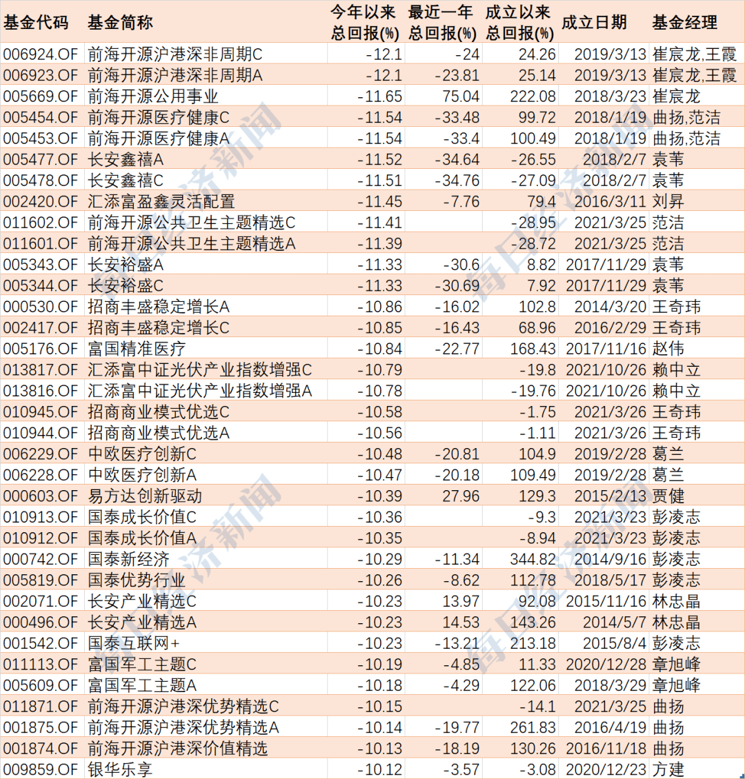 多隻基金4個交易日回撤超10%