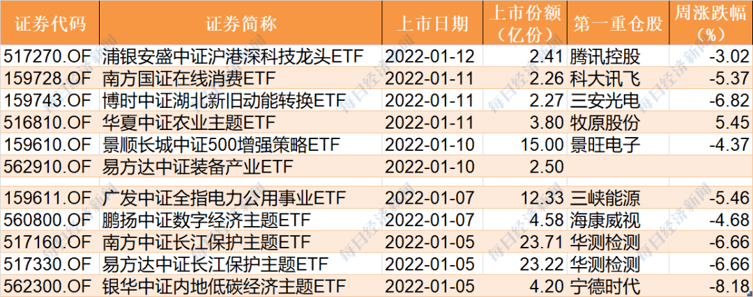 目前已有6隻ETF披露下周上市,上市交易份額約28.24億份。