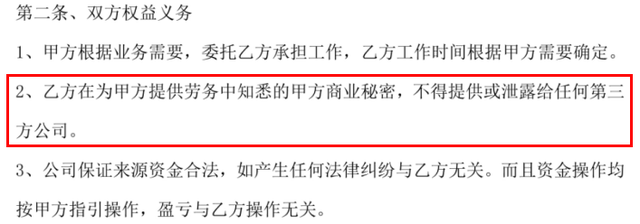 小惠說,因為入職合同里有一條,這個工作屬於商業機密,不能泄露給任何第三方公司。