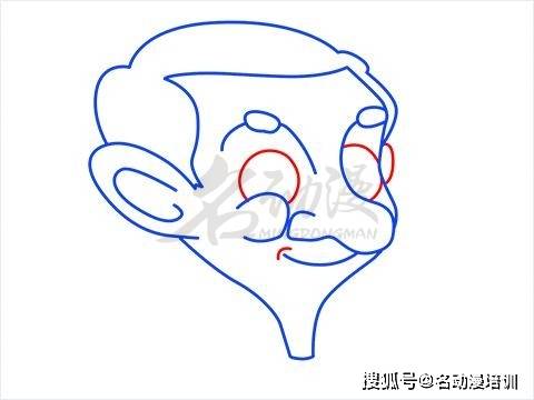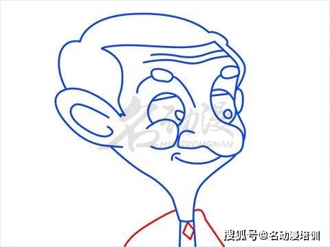 要點七:當然還沒結束,這里我們要畫憨豆先生的眼眶以及右耳,最後畫上唇角。
