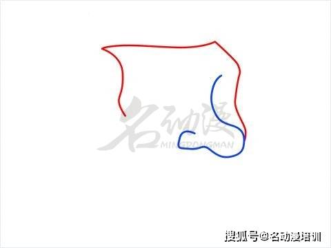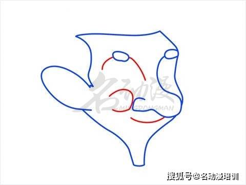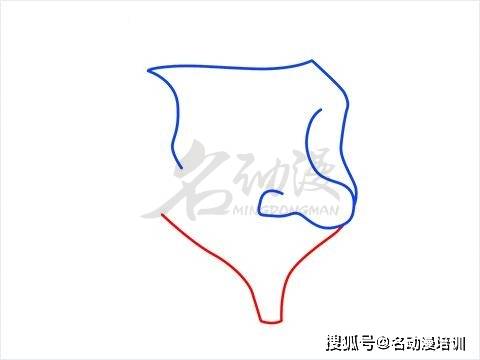 要點三:依然是從鼻頭開始往下畫出一條曲線連接脖子,同樣的方法畫出左邊臉頰,這樣憨豆先生臉部的下半部分畫出來了。