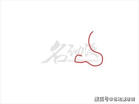 要點一:說道憨豆先生,我們第一反應都是他憨憨傻傻的形象,當然除了憨傻形象以外,他大大的鷹鉤鼻也是很有記憶點的一個地方。第一步我們就用簡潔流暢的線條畫出憨豆先生的鷹鉤鼻,然後圍繞鼻子進行刻畫。