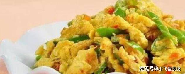 2、鍋內放油(40克),燒熱,將蛋汁倒入,炒好倒出。往鍋內倒入余油,燒熱,放入蔥花熗鍋。