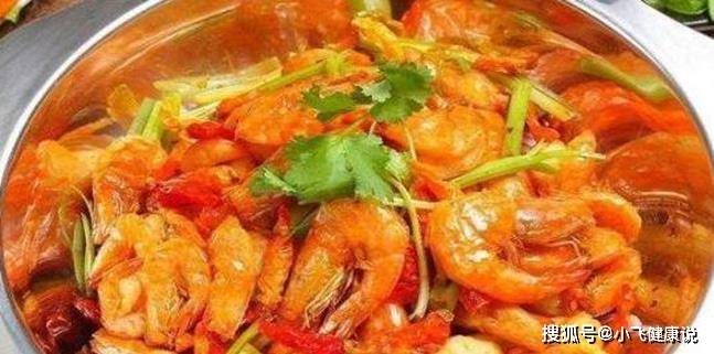 5.放入鮮蝦翻炒,至蝦身收縮彎曲,外殼微紅,期間烹入少量料酒去腥;