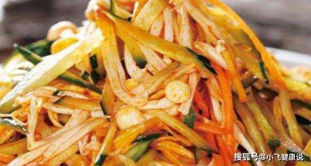 7.金針菇涼了之後,擠去水分,把黃瓜和金針菇放入一個碗裡。