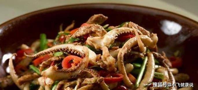 2、鍋留底油,下入魷魚絲,豬肉絲,加配料,調料翻炒,用水澱粉勾芡,淋明油,香油出鍋。