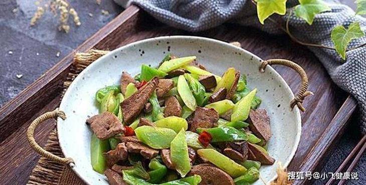 材料:豬肝90克、萵筍150克、紅干椒3個、青椒1個、生薑2片、蔥6克、生抽1湯匙、澱粉少許、鹽適量