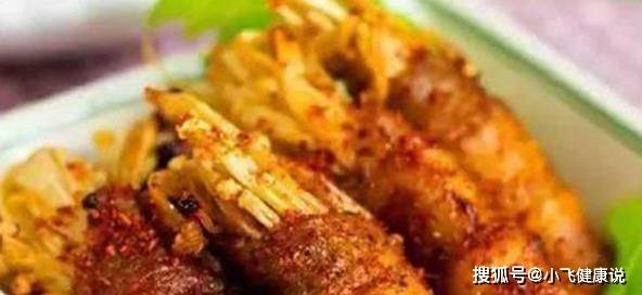 食材:精品五花肉150g;金針菇100g;椒鹽粉1/2茶匙;孜然粉1茶匙;辣椒粉1/2茶匙;烤肉醬1茶匙;生抽1/2茶匙;黃酒2茶匙。