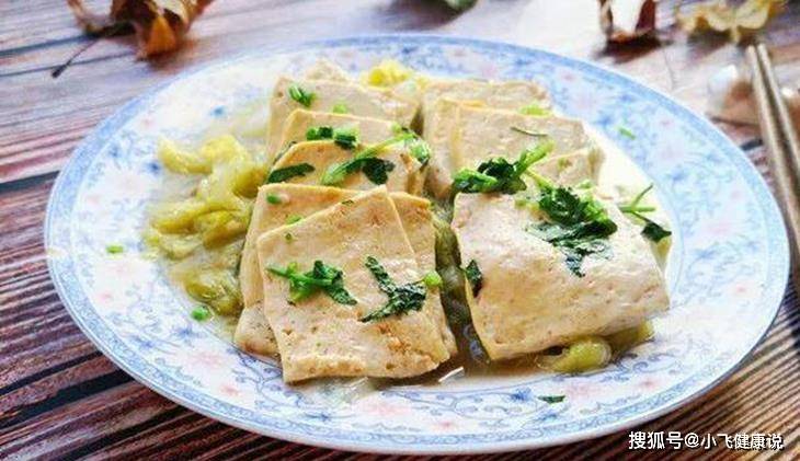 5、再把豆腐放在白菜上面,加適量鹽,慢慢燉