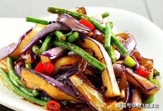 3、鍋稍多放點油,放入薑末,干辣椒再把撈起的漏干水的茄子倒入鍋中。翻炒,待變色,有點軟時,放已過水的豆夾,大蒜,生抽,再翻炒後放少量的鹽,雞精起鍋。