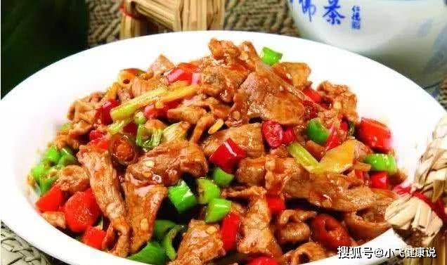 2.青紅椒切塊,蔥切段,黃米椒切粒,泡姜切片,姜蒜切米;鍋熱油後將牛肉放入快速滑變色盛出;