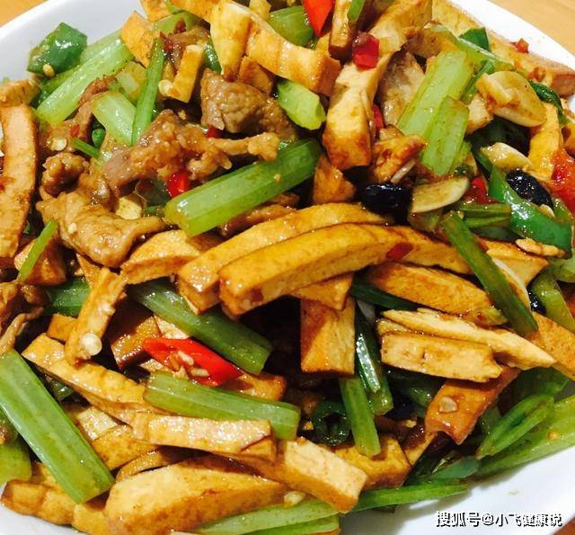 食材:豆腐乾(薰的豆腐片)260克,芹菜220克,裡脊肉100克,豆豉1小撮,大蒜3瓣,青尖椒2個,小米辣椒3個,植物油,鹽,剁椒,生抽,老抽,白胡椒粉,雞精各適量;