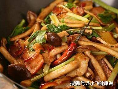 食材:鮮茶樹菇250克(用雞腿菇、口蘑、草菇代替都不錯);臘肉50克;香芹50克;蔥適量;姜2片;蒜瓣2個;干辣椒6根;花椒1勺;