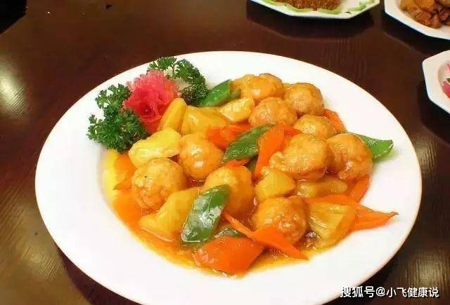 1.雞腿肉切片,加鹽 、味精、生粉、食粉 、水醃20分鍾,在4成熱油中滑熟成球 。