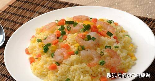 食材:米飯200克、大蝦、黃瓜個50克、雞蛋1個、蔥、鹽、味精、胡椒粉、色拉油各適量。