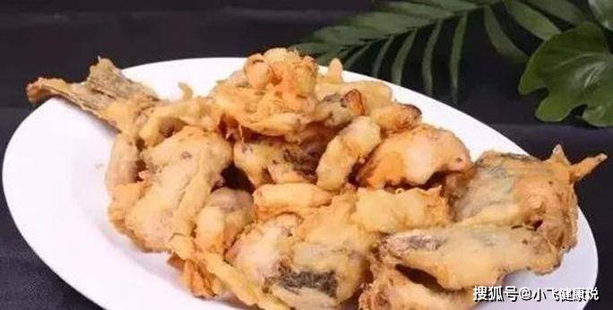 4、鍋下寬油燒至七成熱,放入魚塊中火浸炸至熟透,撈出後升高油溫至九成,放入魚塊復炸至色澤金黃、外酥里嫩,瀝油後擺入盤中即可上桌。