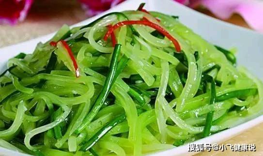 6.倒入萵筍絲,翻炒幾下,放鹽和雞精,翻炒均勻