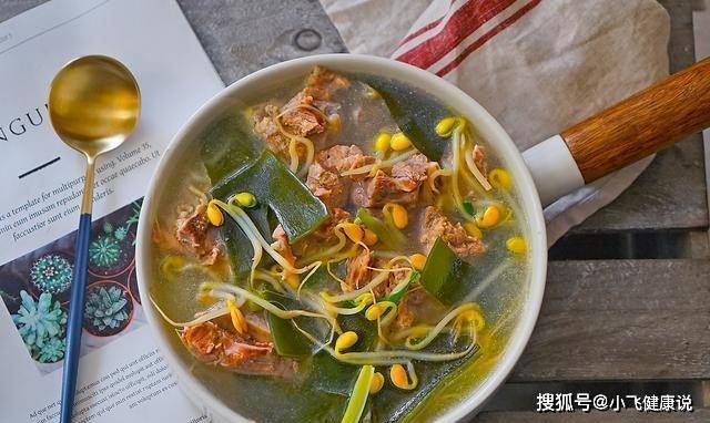 材料:豬骨400克、海帶80克、黃豆芽40克、蔥2棵、生薑3片、鹽適量
