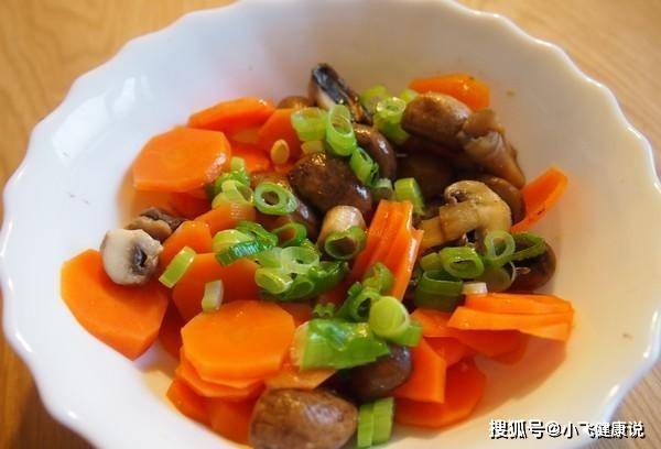 1.香菇洗淨、胡蘿卜去皮切片、蔥洗淨切成蔥末;鍋中水燒開,放一小勺鹽,倒入香菇和胡蘿卜片,焯水一分鍾後撈出,晾涼;