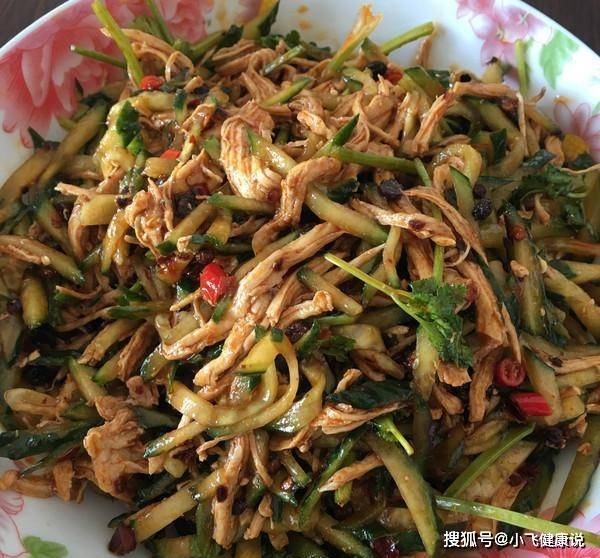 3.黃瓜切絲,紅椒切絲,加雞絲,花椒油,蒜(末),鹽,醋,蚝油,辣椒油拌勻即可