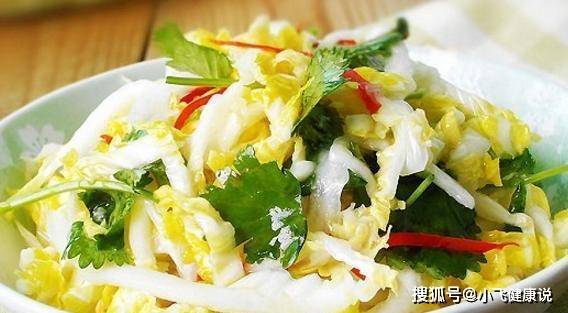 5、白菜絲中加入香菜,淋入椒絲油就可以了。