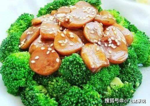 3、鍋內重新放油,油熱後下另一半蔥姜蒜煸出香味,放杏鮑菇煸炒。加蚝油、老抽、白糖、雞精,燒至湯汁稠濃,出鍋扣在西蘭花上,撒白芝麻裝飾