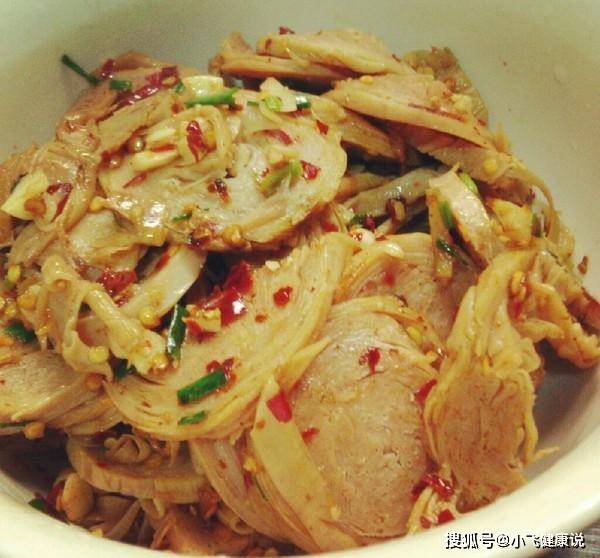 4.大約10分鍾,素雞體積膨脹,入味,最後用大火收汁,拌炒均勻。撒少許蔥花跟小米椒即可出鍋