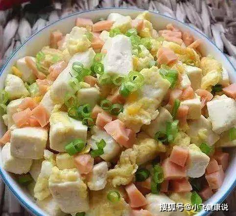 材料:雞蛋;豆腐;火腿;香蔥;料酒;油;鹽;水澱粉