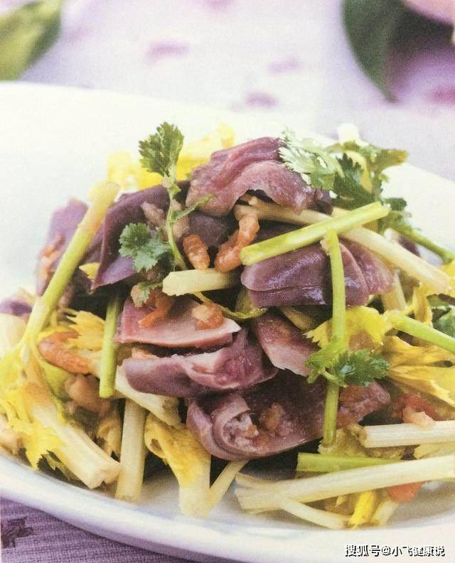 1. 熟豬肚洗淨,切成小薄片。海米用溫水浸泡好;芹黃擇好洗淨,切成長段,入沸水中汆水,撈出,沖涼,控淨水分。
