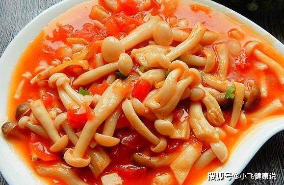 4、熱鍋熱油,將白玉菇放入鍋中翻炒,倒入少量醬油上色調味,然後將小番茄倒入翻炒。