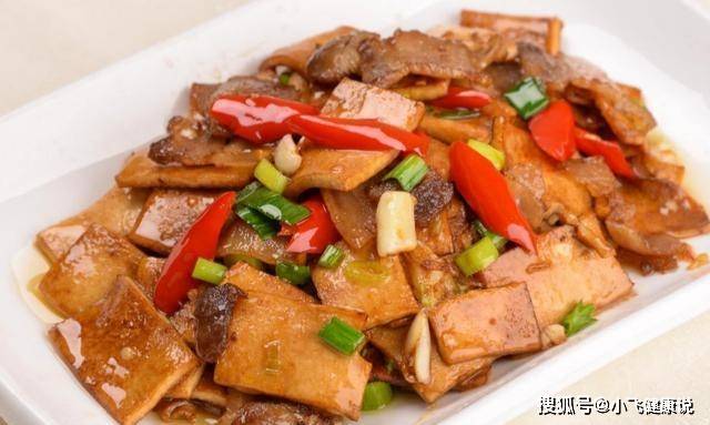 材料:五花肉500克、豆腐乾300克、油、鹽、冰糖、姜、蒜、八角2個、桂皮1塊、干辣椒、料酒、生抽、老抽、香葉