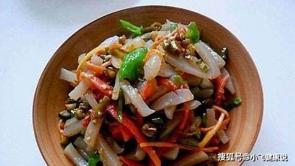 1,蓮藕去皮切丁,放在清水裡浸泡一會,瀝干水分備用。