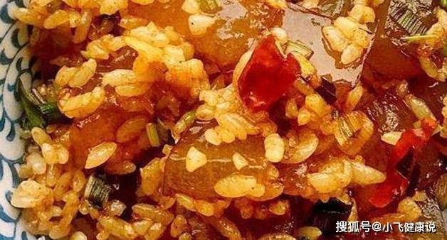 4、加入米飯打散直至翻炒到米飯和涼粉和諧共處,一定要把涼粉塊炒透炒熱,米飯也均勻上色,裝盤。