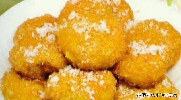 5.鍋內放適量油,油溫燒熱至7成熱,往油鍋內放入糕坯,炸至油糕表面起小泡,兩面呈金黃色撈出,表面撒上白糖即可。