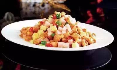 1、雞腿肉洗淨,去骨後將雞肉切成2厘米的丁,加入B料醃制10分鍾;胭脂蘿卜和泡仔姜分別切成2厘米見方的丁。