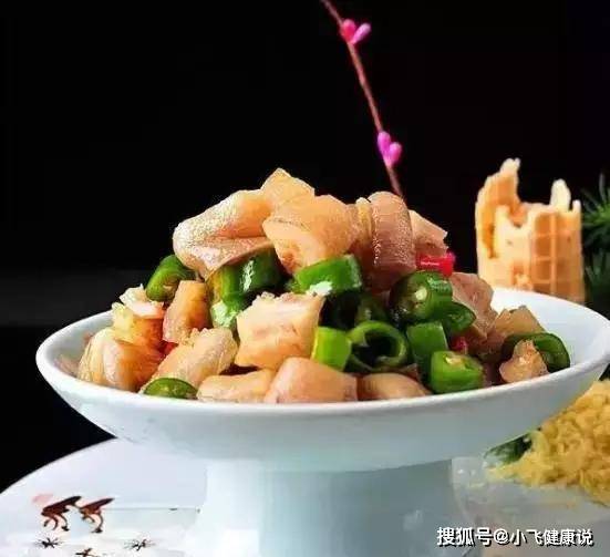 1、把豬蹄治淨,然後放入高壓鍋中加底味壓。待取出豬蹄晾涼後,去掉大骨並切成方丁;甜椒用火燒好後切丁,二荊條辣椒切丁,均待用。