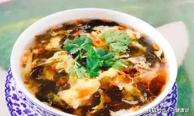 2、水開,加入胡蘿卜末和少許紫菜,用筷子攪開;倒入水澱粉勾芡後燒開,加入一大勺蝦皮略煮,倒入蛋液。