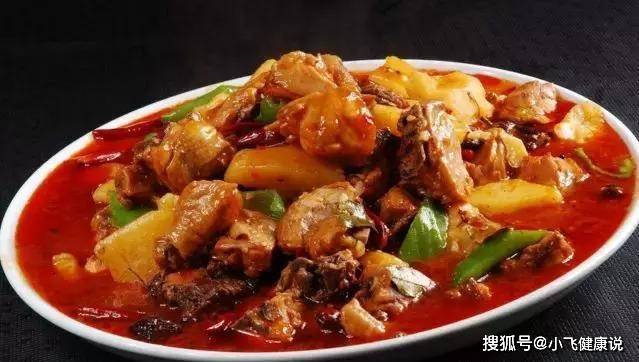2、在熱油鍋中爆香蒜頭、干辣椒、花椒、薑片、蔥段,放入豆瓣醬炒出紅油之後倒入雞肉翻炒,加入醬油、老抽、糖、鹽,待雞肉炒熟上色後,加入土豆炒熟,倒入開水,沒過雞肉和土豆,中火慢燉收汁,湯汁收的差不多時,倒入青紅辣椒炒熟,用另一個鍋煮麵條,熟了之後放在菜里即可。