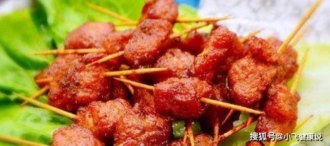 1、肉切合適大小的塊,加生抽,鹽,花椒粉用手抓勻,醃制30分鍾。然後加入澱粉拌勻,用牙簽串起。炸鍋里熱油。