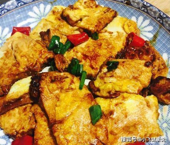 4、豆腐裹上蛋液,鍋里熱油,把豆腐煎到表面金黃。豆腐很嫩,煎的時候容易碎,要有耐心等到一面煎到金黃再輕輕翻面哦。