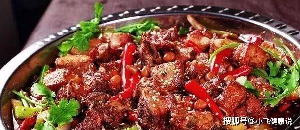 4、鍋里加油,放入豆瓣醬、姜、干辣椒炒香,加入洋蔥和大蒜一起炒,然後加入排骨繼續翻炒。加糖、生抽、辣椒粉、花椒粉