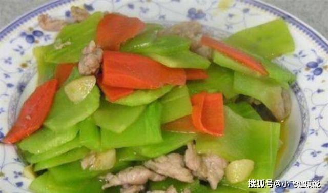 食材:豬肉50g、萵筍300g、油、鹽適量、胡蘿卜適量、生抽、料酒適量、姜、蒜適量、雞精適量。
